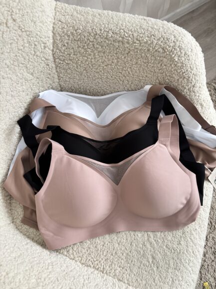 Комфортний безшовний топ із вбудованими чашками. Добре підтримує груди, не тисне та не помітний під одягом. М’який, еластичний матеріал і широкі бретелі забезпечують зручну посадку на кожен день.